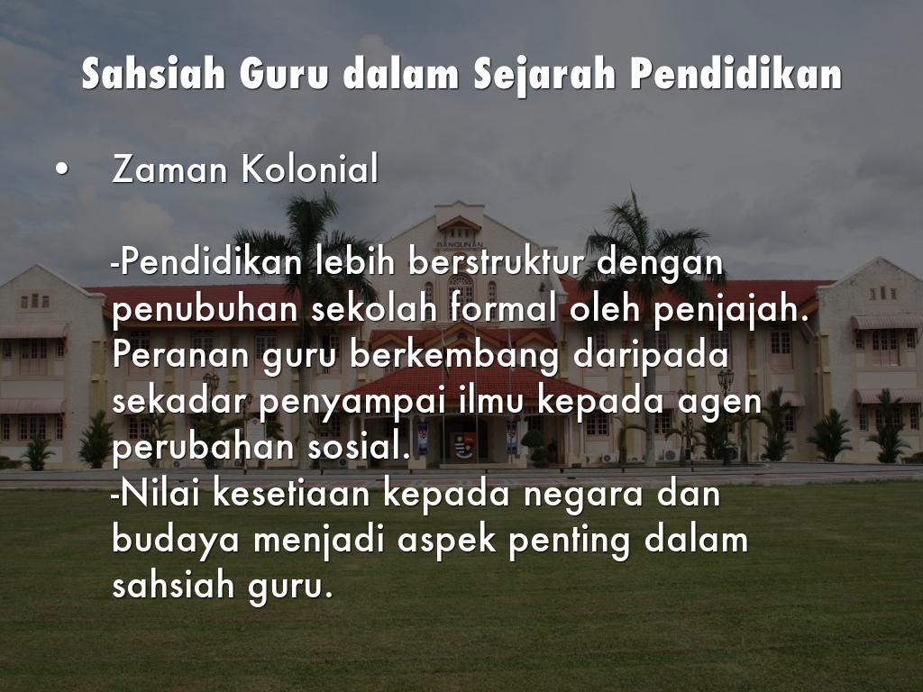 -Sahsiah guru semakin ditekankan melalui latihan keguruan dan profesionalisme dalam pendidikan.
