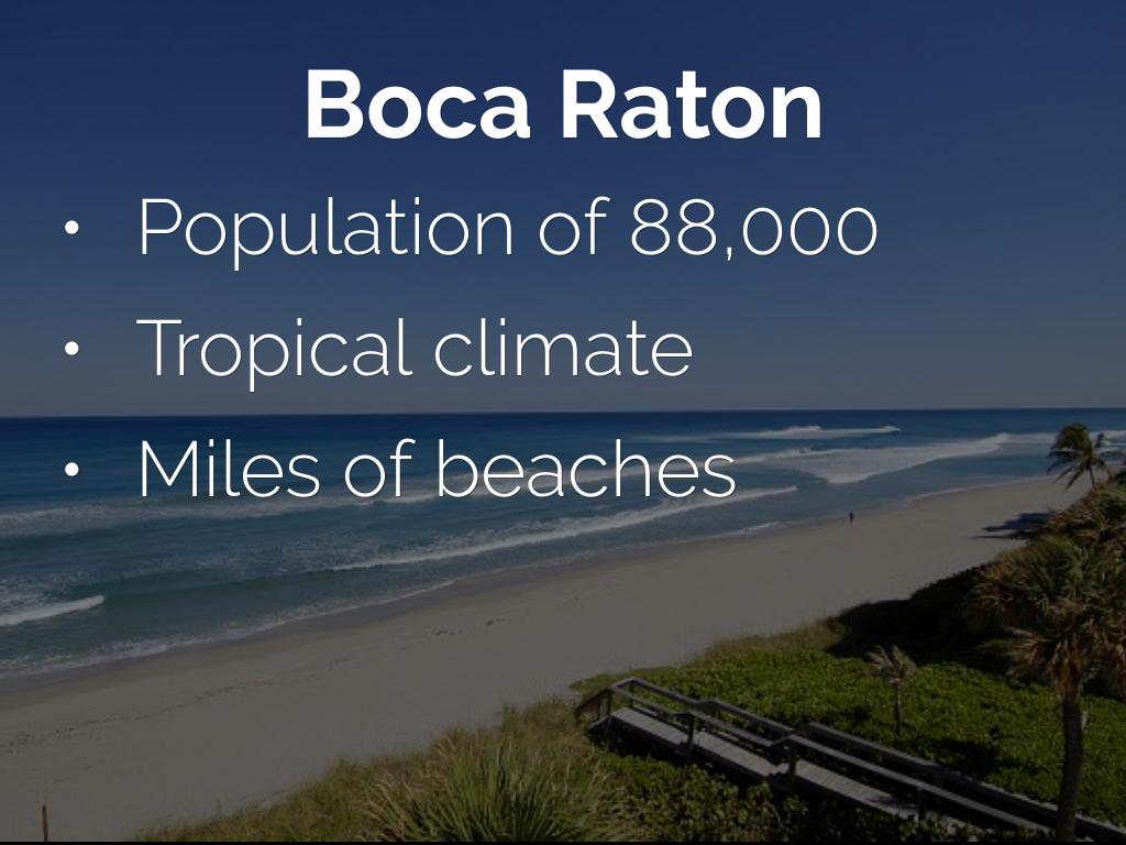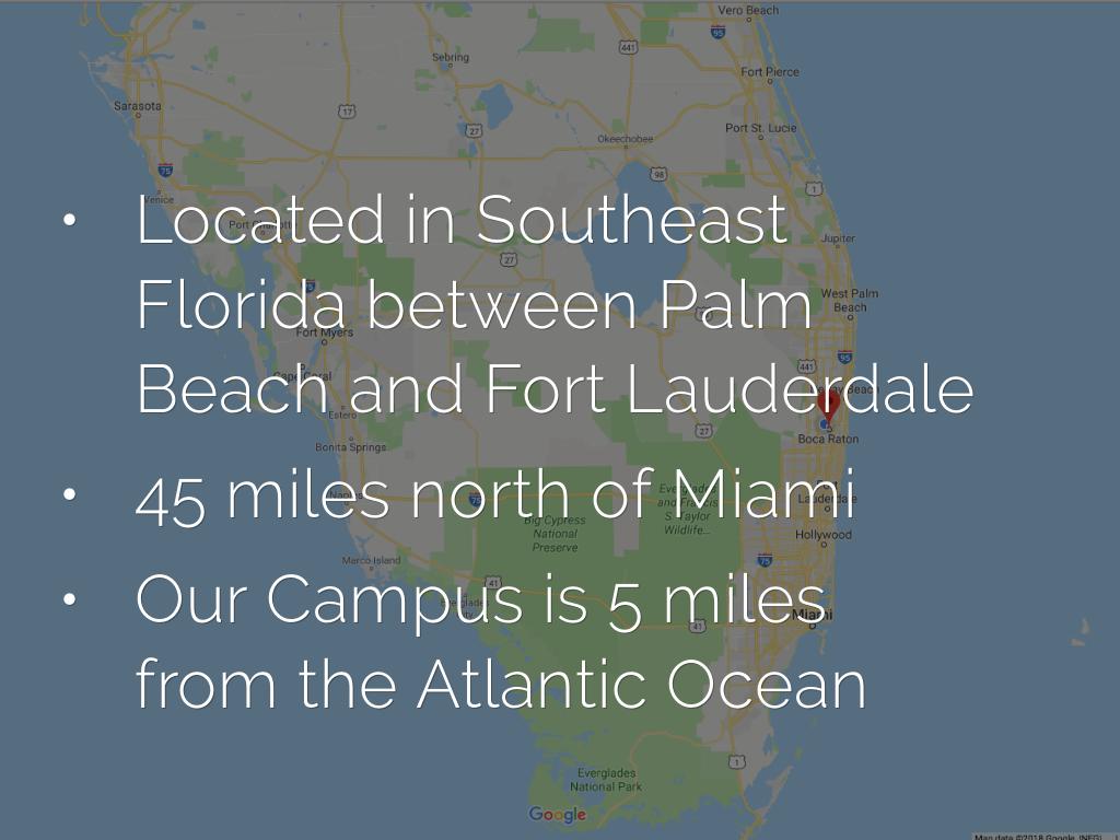 - Located in Southeast Florida between Palm Beach and Fort Lauderdale