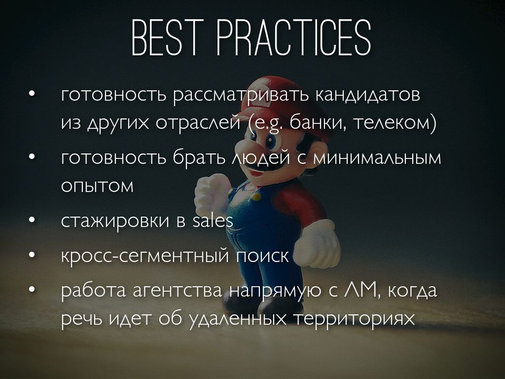 - готовность рассматривать кандидатов из других отраслей (e.g. банки, телеком)