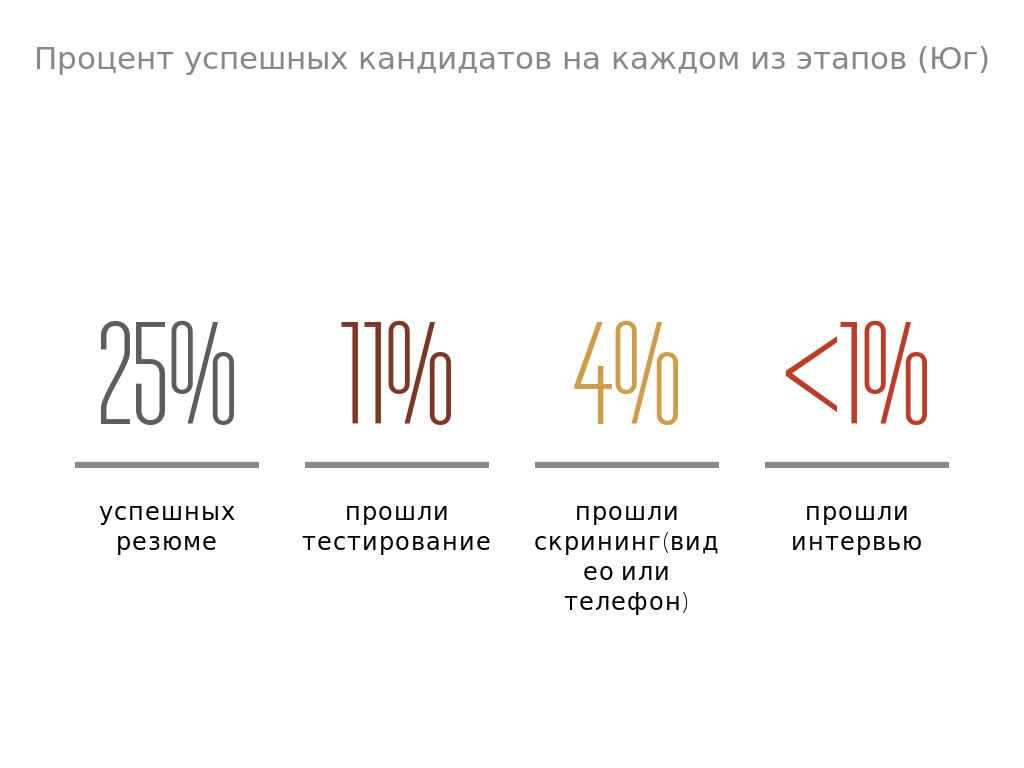 Процент успешных кандидатов на каждом из этапов (Юг)