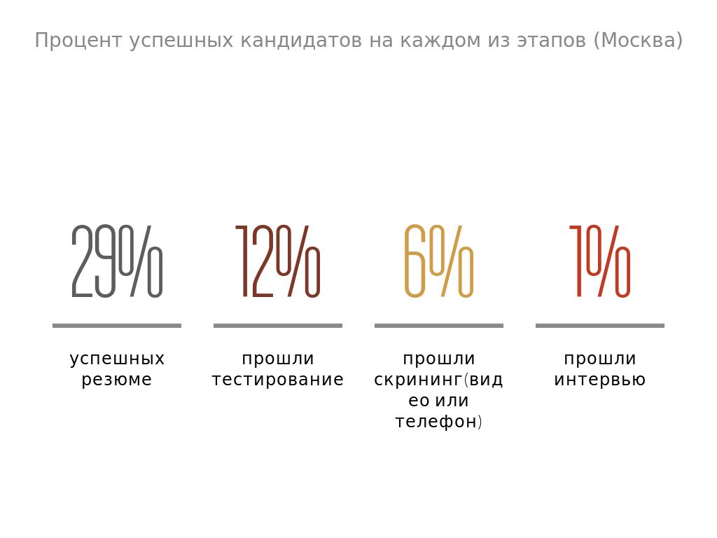 Процент успешных кандидатов на каждом из этапов (Москва)