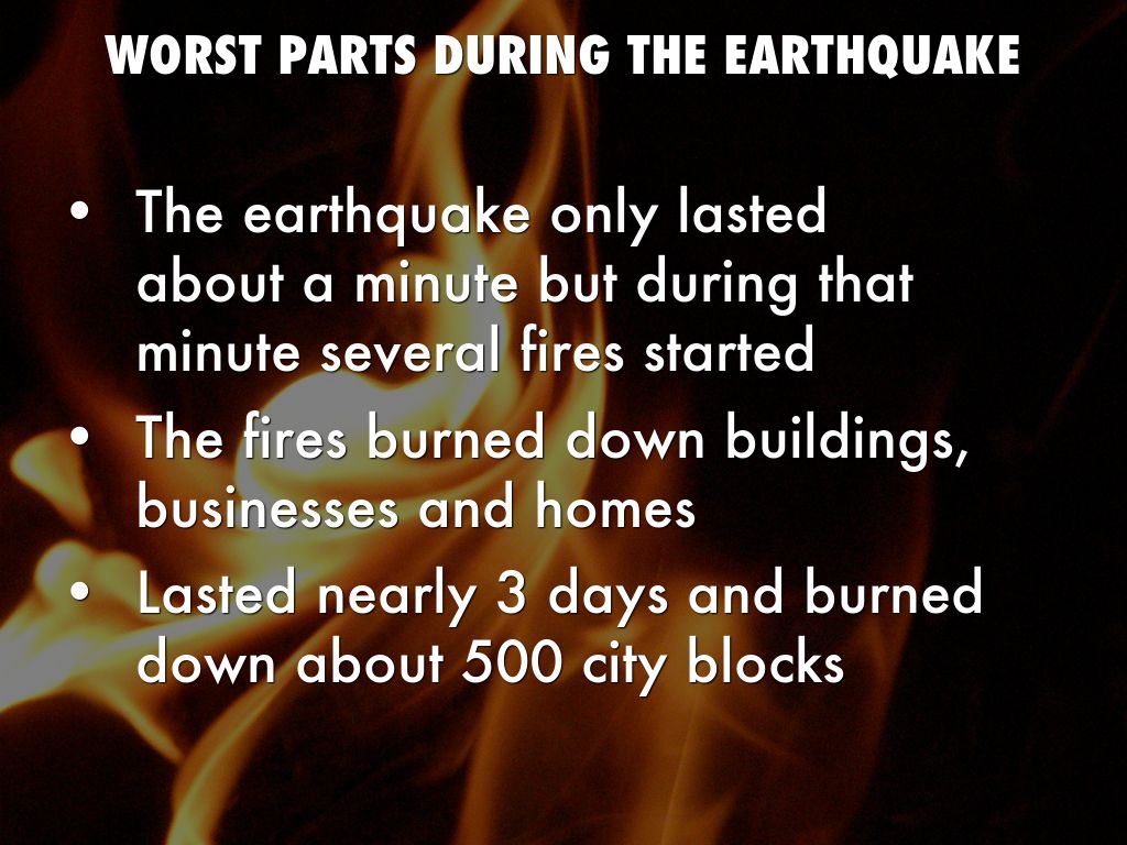 The earthquake only lasted about a minute but during that minute several fires started