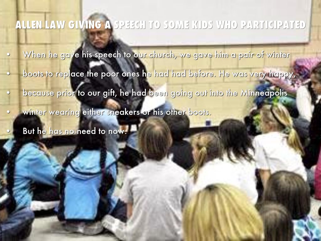 Allen law giving a speech to some kids who participated