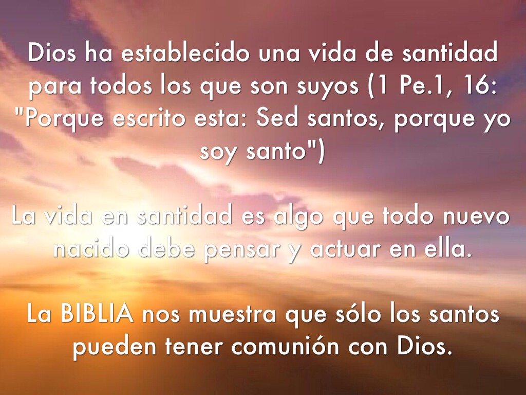Dios ha establecido una vida de santidad para todos los que son suyos (1 Pe.1, 16: "Porque escrito esta: Sed santos, porque yo soy santo")