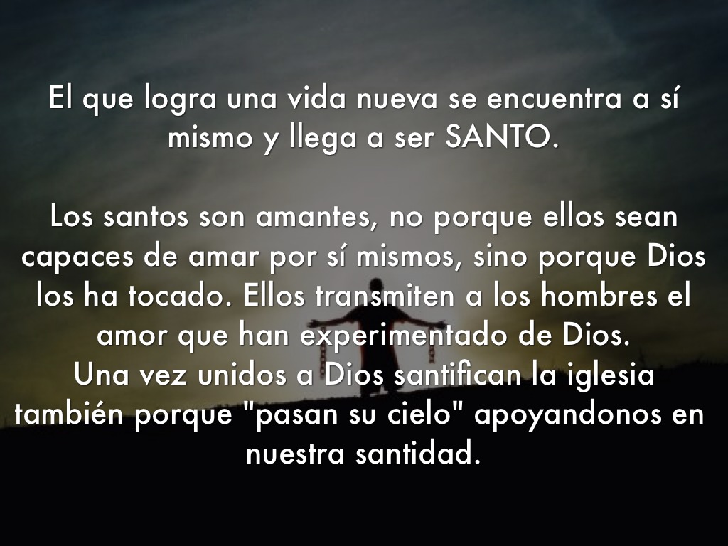 El que logra una vida nueva se encuentra a sí mismo y llega a ser SANTO.