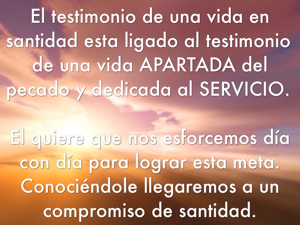 El testimonio de una vida en santidad esta ligado al testimonio de una vida APARTADA del pecado y dedicada al SERVICIO.