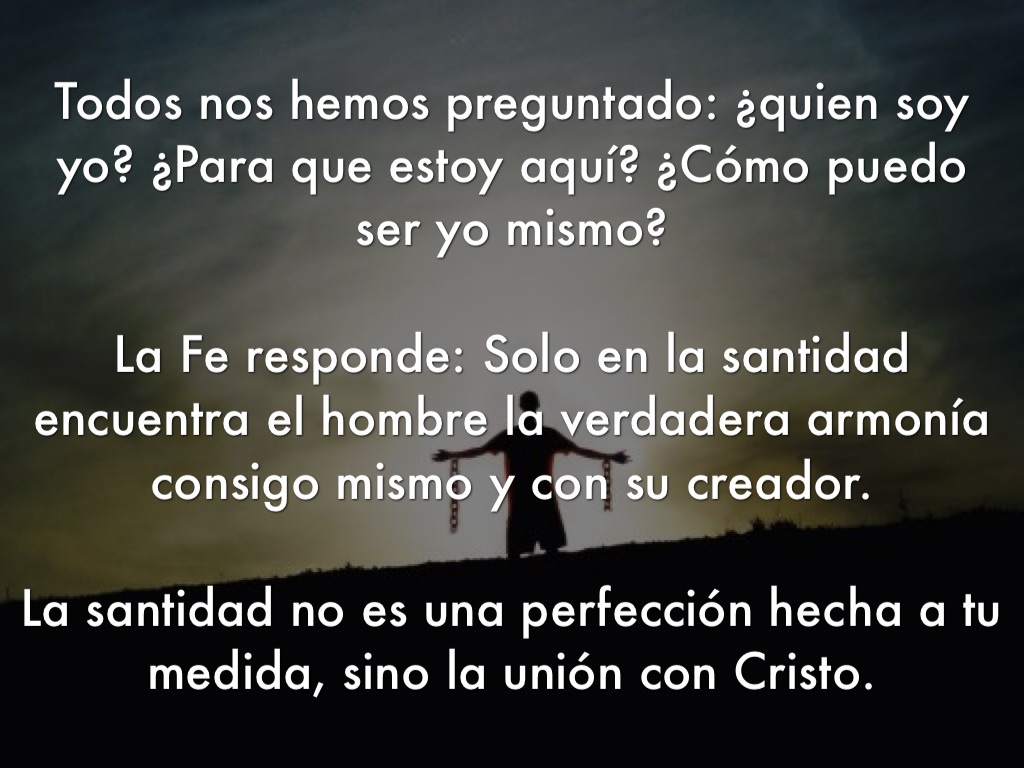 La Fe responde: Solo en la santidad encuentra el hombre la verdadera armonía consigo mismo y con su creador.
