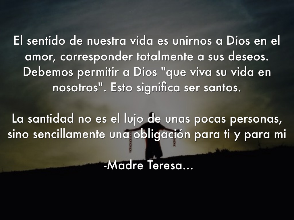El sentido de nuestra vida es unirnos a Dios en el amor, corresponder totalmente a sus deseos. Debemos permitir a Dios "que viva su vida en nosotros". Esto significa ser santos.