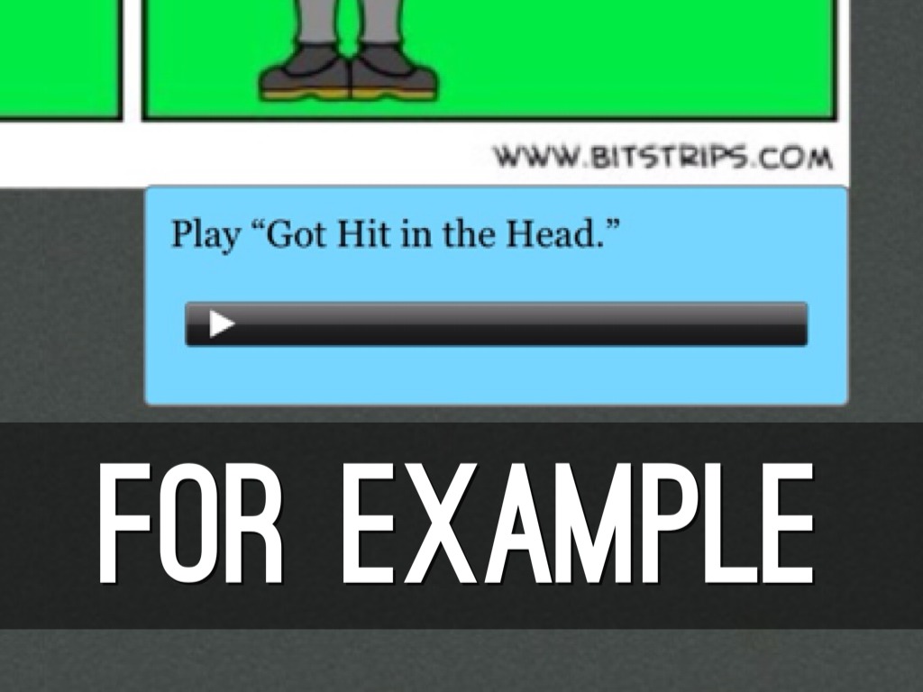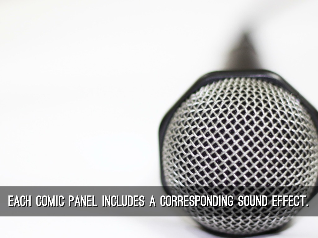 EACH COMIC PANEL INCLUDES A CORRESPONDING SOUND EFFECT.