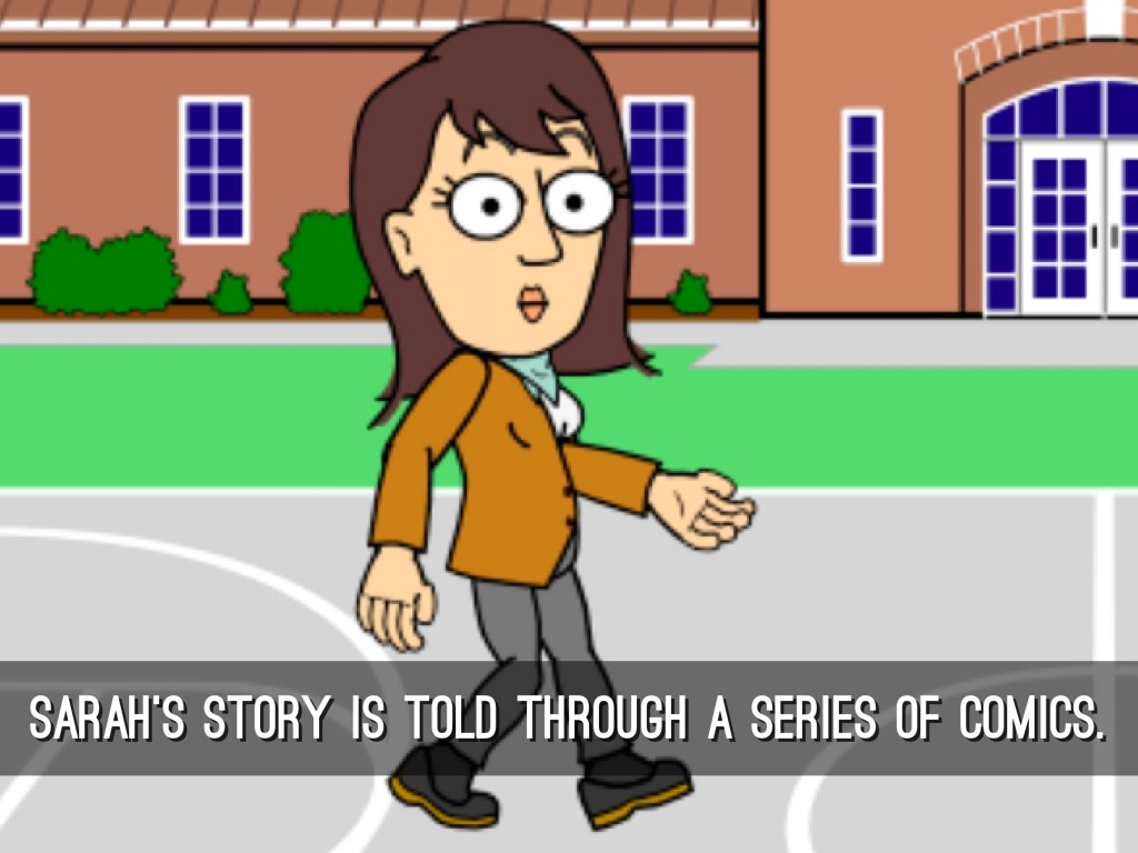 SARAH'S STORY IS TOLD THROUGH A SERIES OF COMICS.