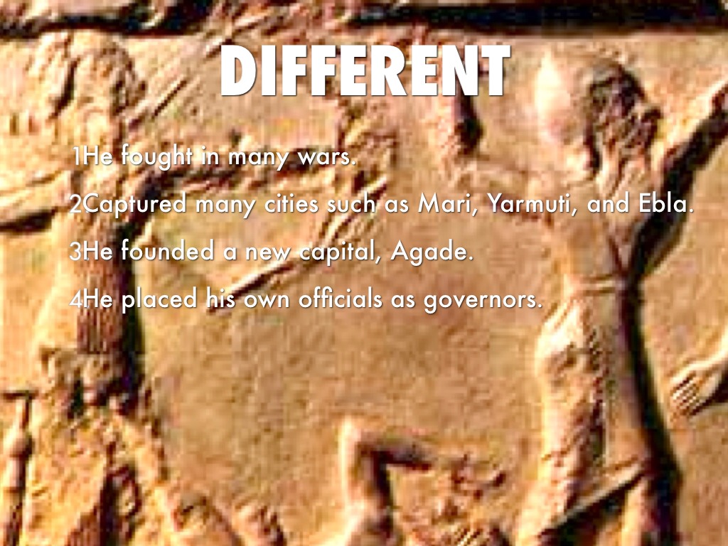 Captured many cities such as Mari, Yarmuti, and Ebla.
