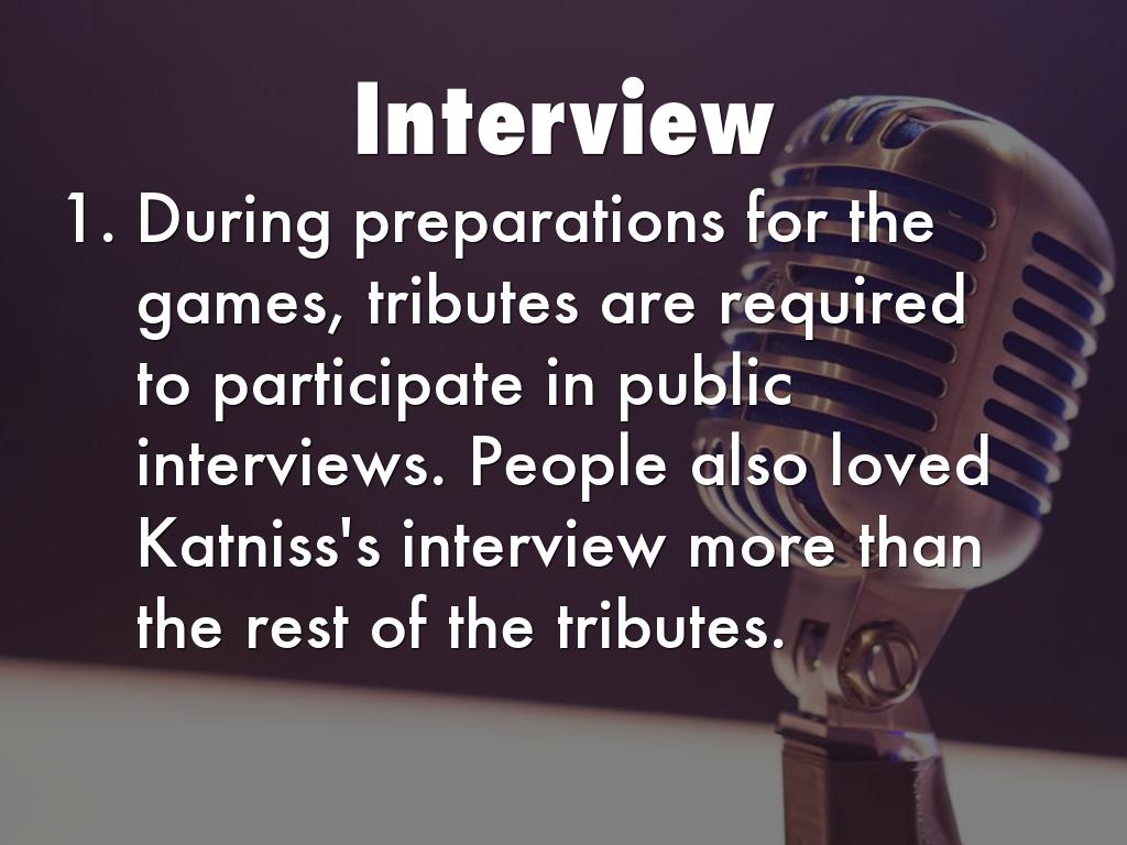 During preparations for the games, tributes are required to participate in public interviews. People also loved Katniss's interview more than the rest of the tributes.
