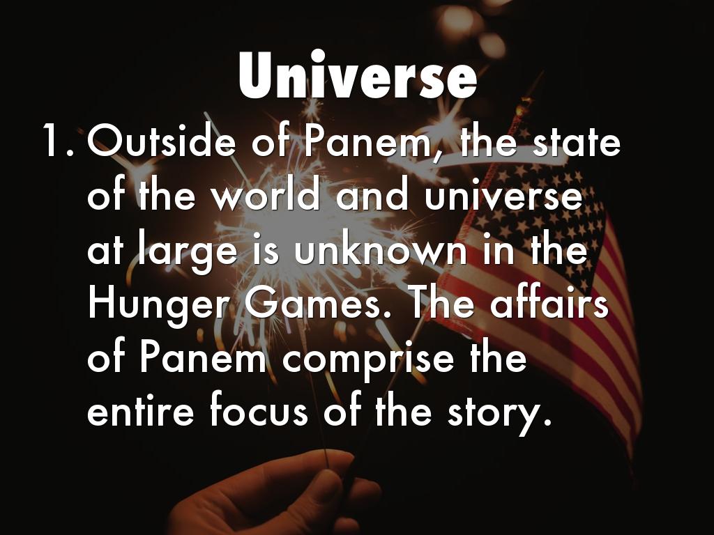 Outside of Panem, the state of the world and universe at large is unknown in the Hunger Games. The affairs of Panem comprise the entire focus of the story.