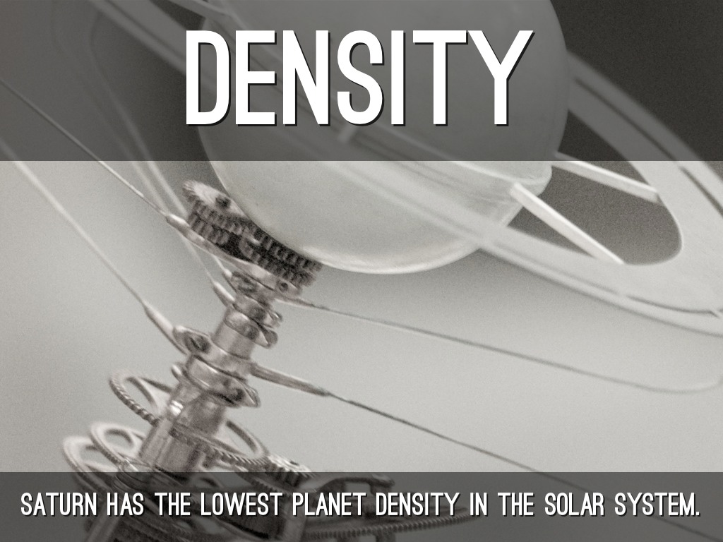 SATURN HAS THE LOWEST PLANET DENSITY IN THE SOLAR SYSTEM.