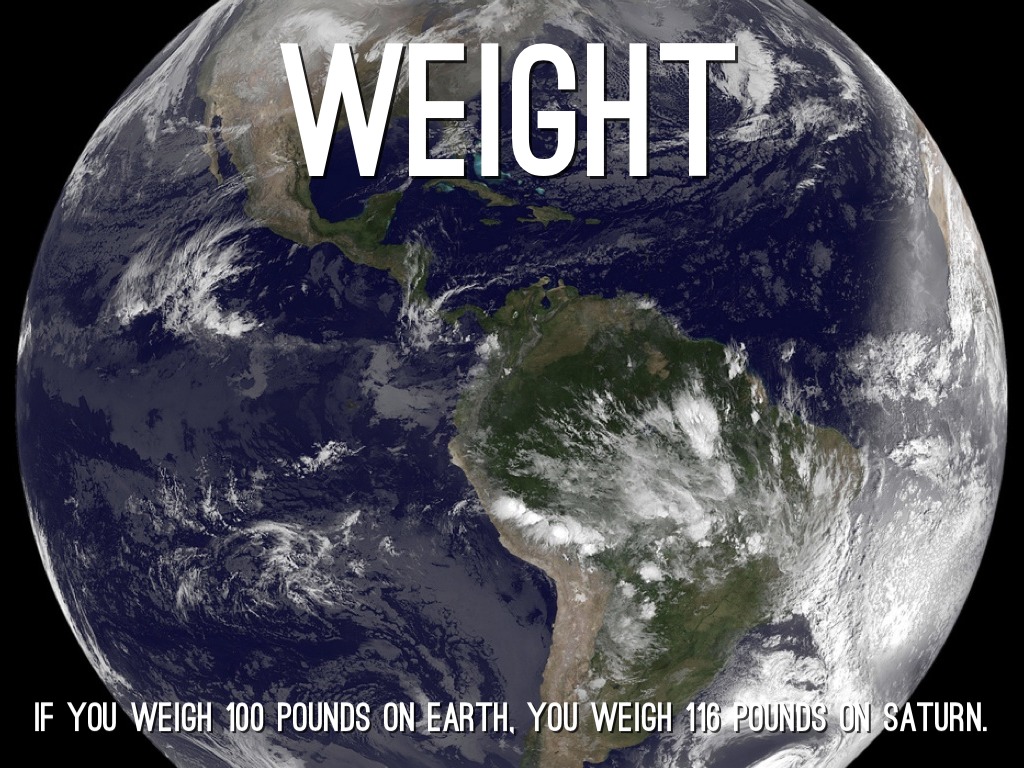 IF YOU WEIGH 100 POUNDS ON EARTH, YOU WEIGH 116 POUNDS ON SATURN.