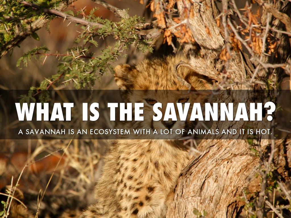 A SAVANNAH IS AN ECOSYSTEM WITH A LOT OF ANIMALS AND IT IS HOT.