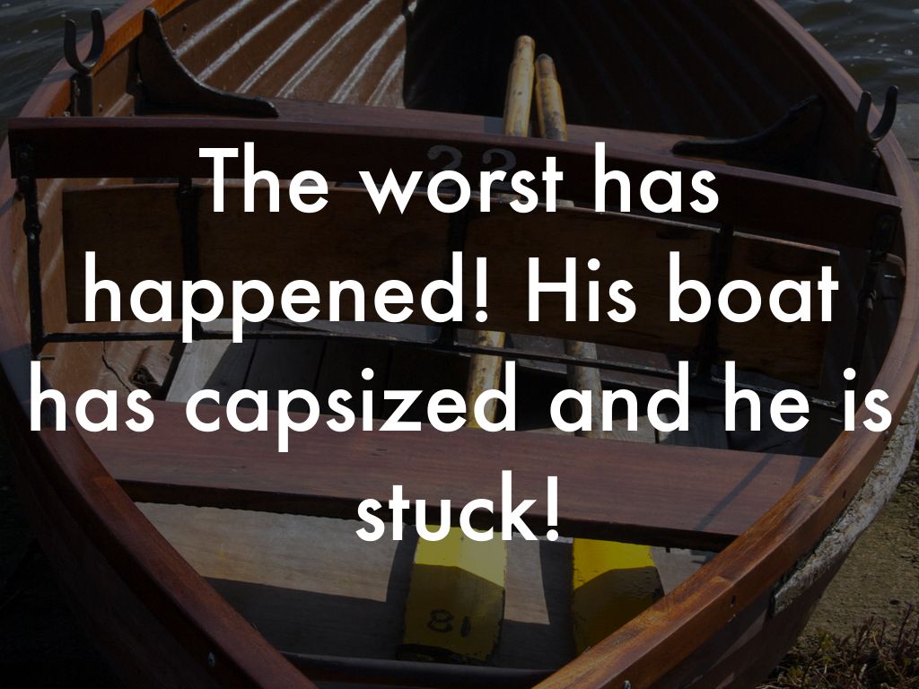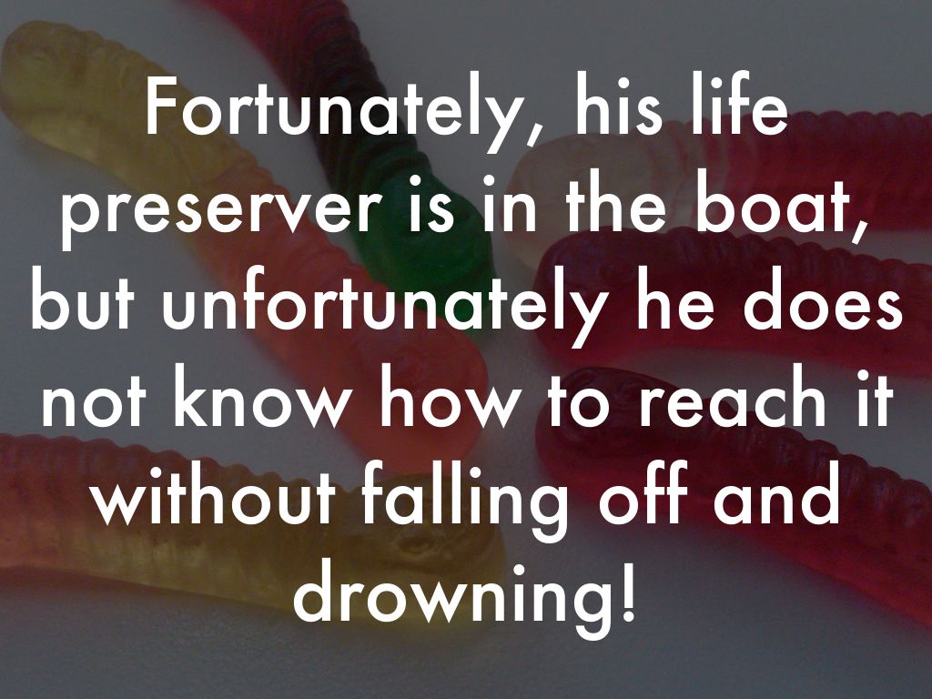 Fortunately, his life preserver is in the boat, but unfortunately he does not know how to reach it without falling off and drowning!