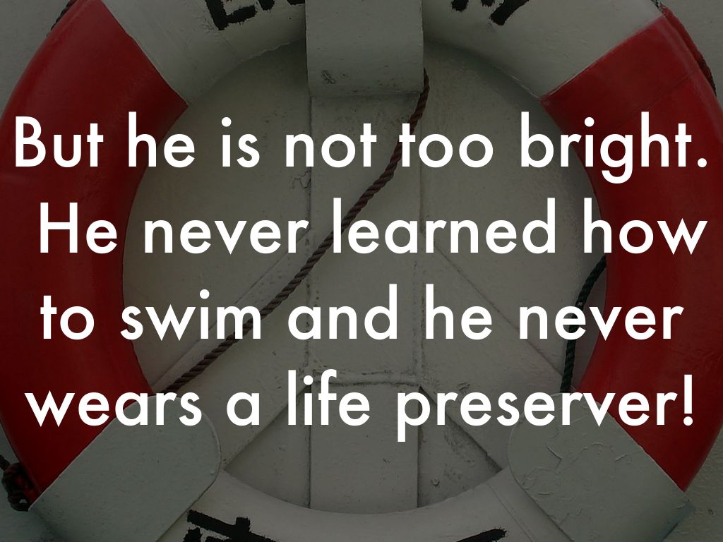 But he is not too bright. He never learned how to swim and he never wears a life preserver!