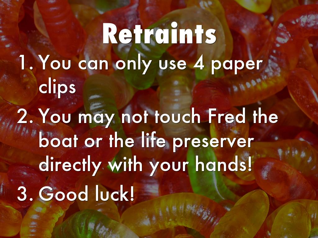 • You may not touch Fred the boat or the life preserver directly with your hands!