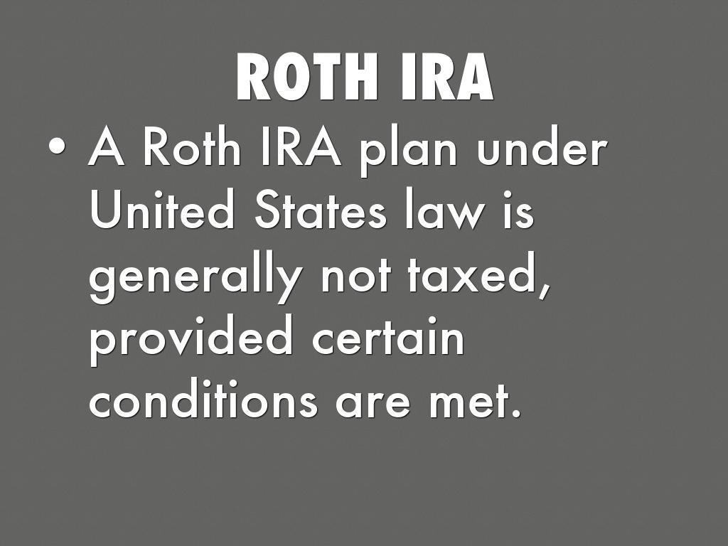 A Roth IRA plan under United States law is generally not taxed, provided certain conditions are met.