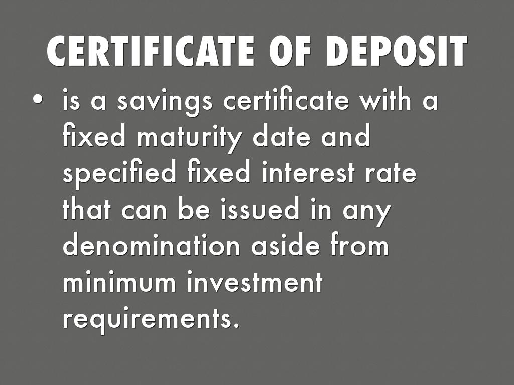 is a savings certificate with a fixed maturity date and specified fixed interest rate that can be issued in any denomination aside from minimum investment requirements.