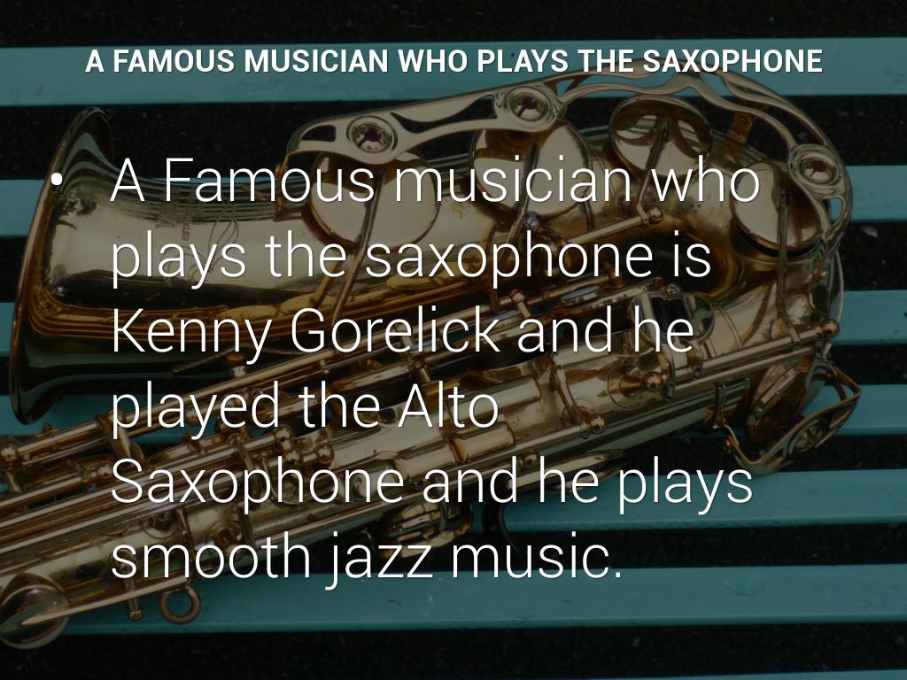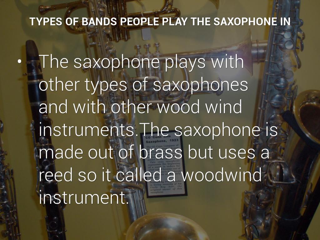 The saxophone plays with other types of saxophones and with other wood wind instruments.The saxophone is made out of brass but uses a reed so it called a woodwind instrument.