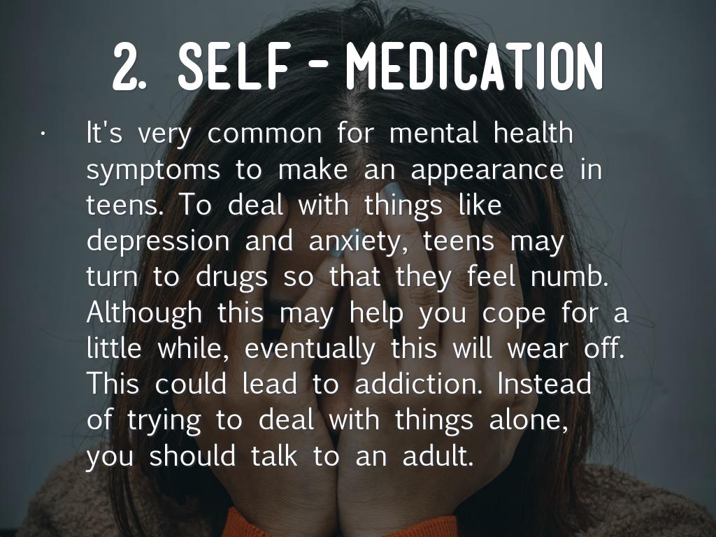 It's very common for mental health symptoms to make an appearance in teens. To deal with things like depression and anxiety, teens may turn to drugs so that they feel numb. Although this may help you cope for a little while, eventually this will wear off. This could lead to addiction. Instead of trying to deal with things alone, you should talk to an adult.