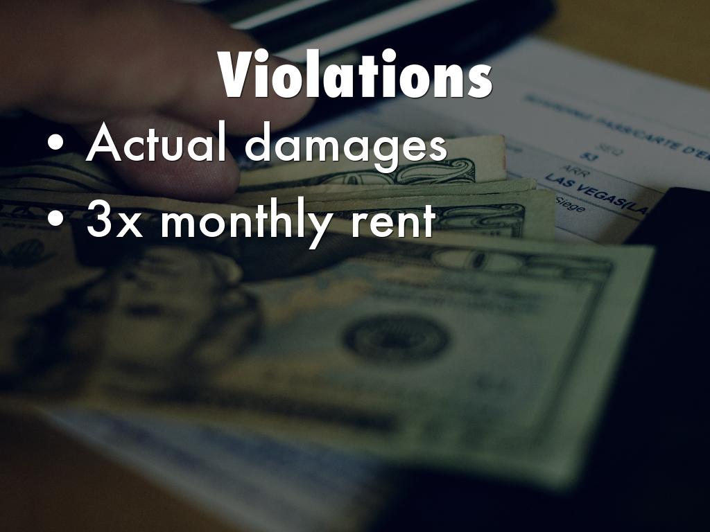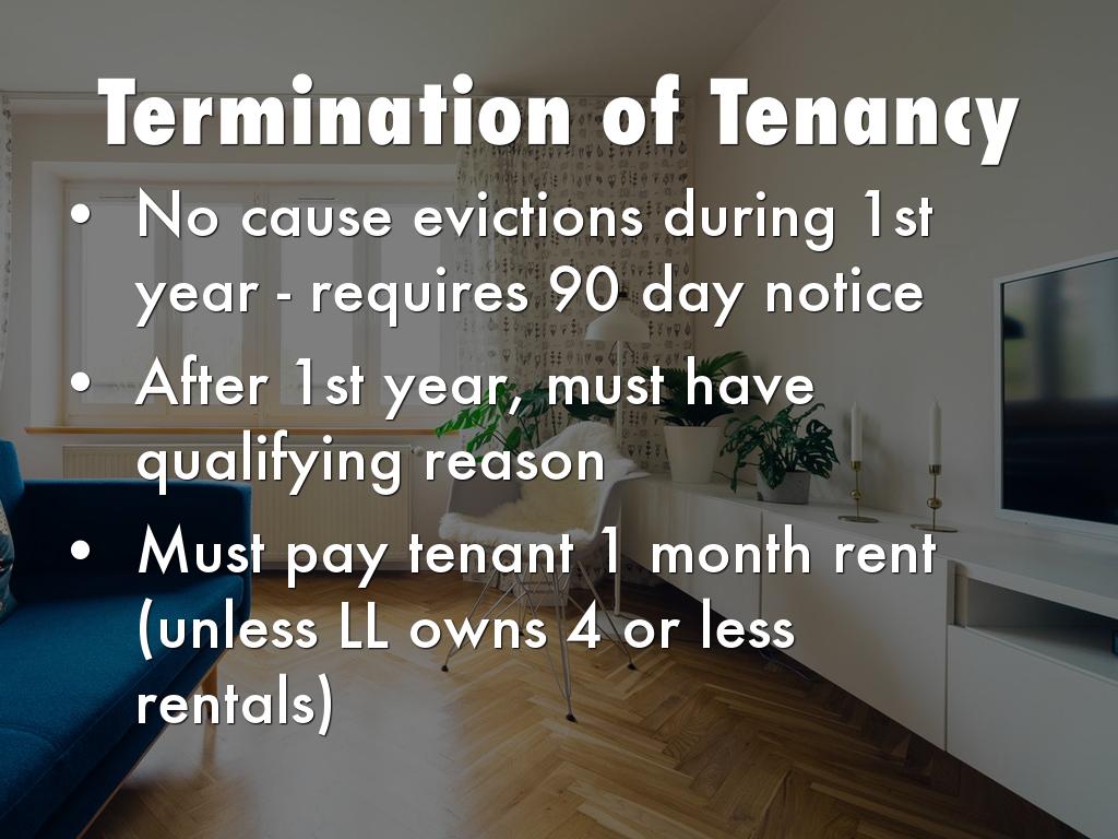 Must pay tenant 1 month rent (unless LL owns 4 or less rentals)