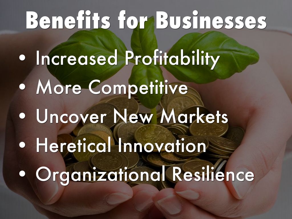 Businesses will be able to view their business through a sustainability lens. Often this mindset leads to new ideas and innovations.