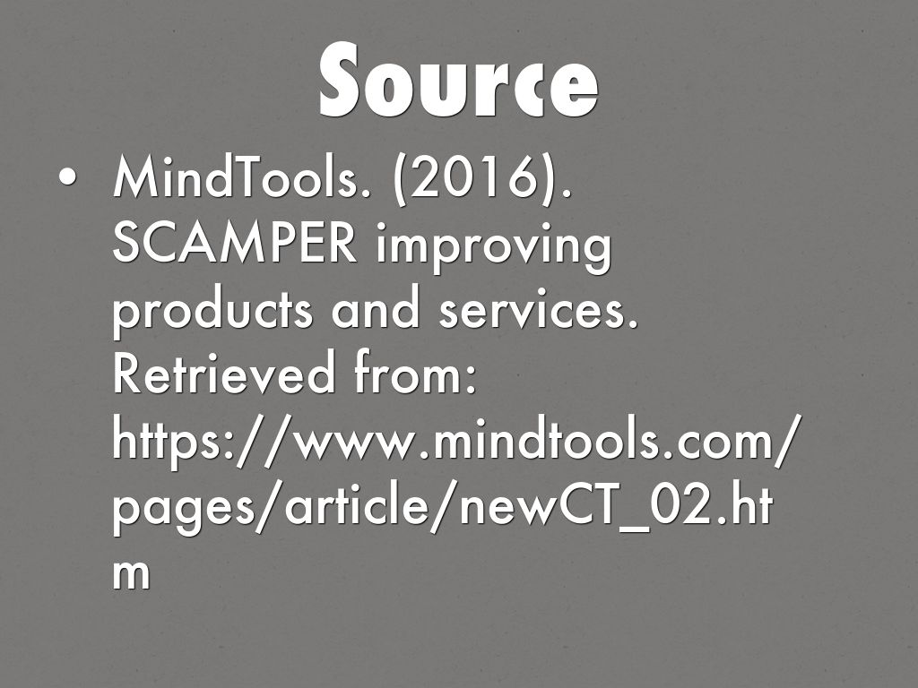 MindTools. (2016). SCAMPER improving products and services. Retrieved from: