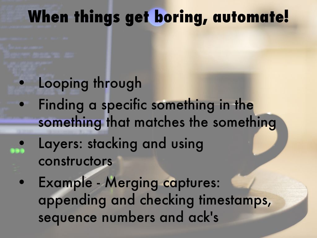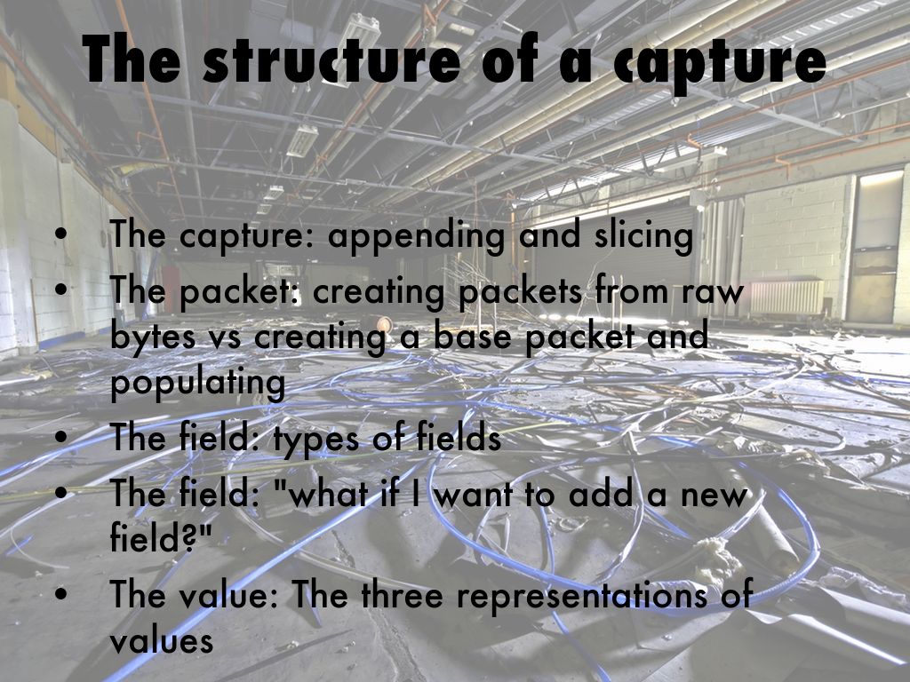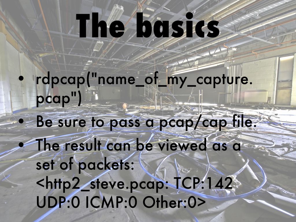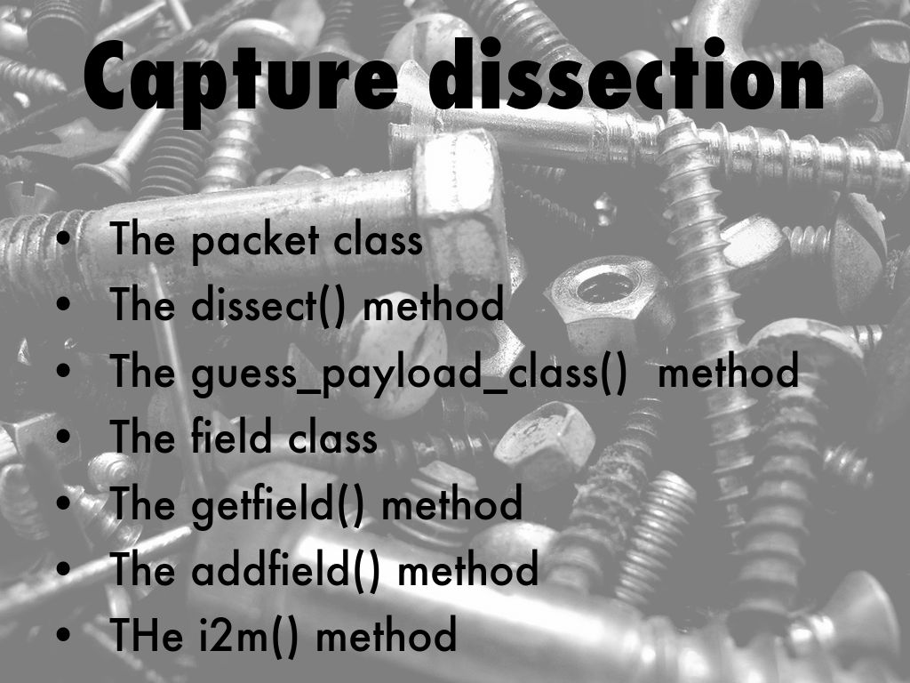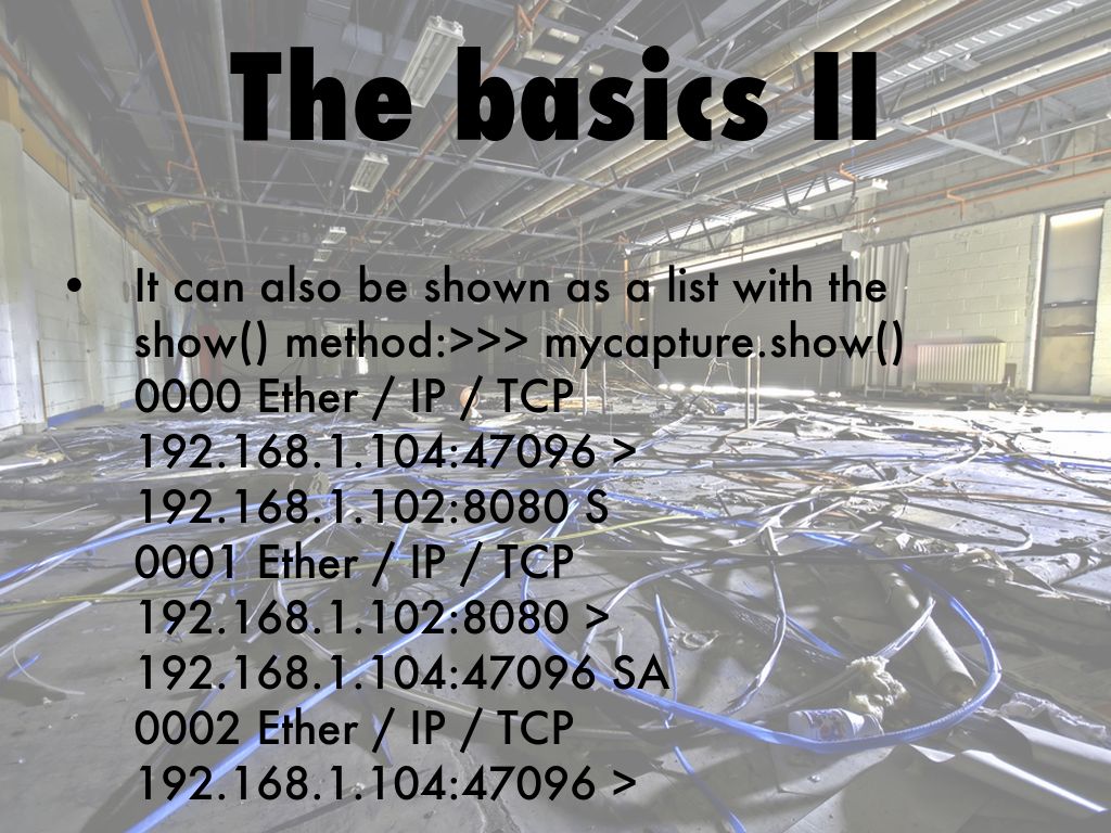 It can also be shown as a list with the show() method:>>> mycapture.show()