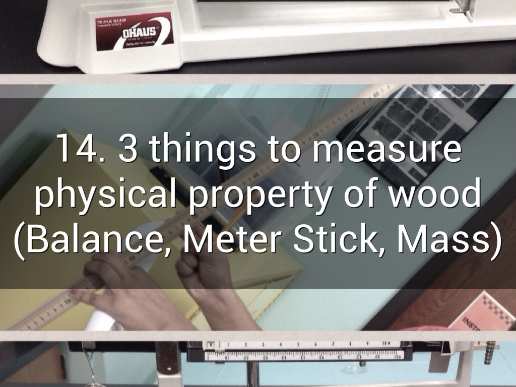 14. 3 things to measure physical property of wood (Balance, Meter Stick, Mass)