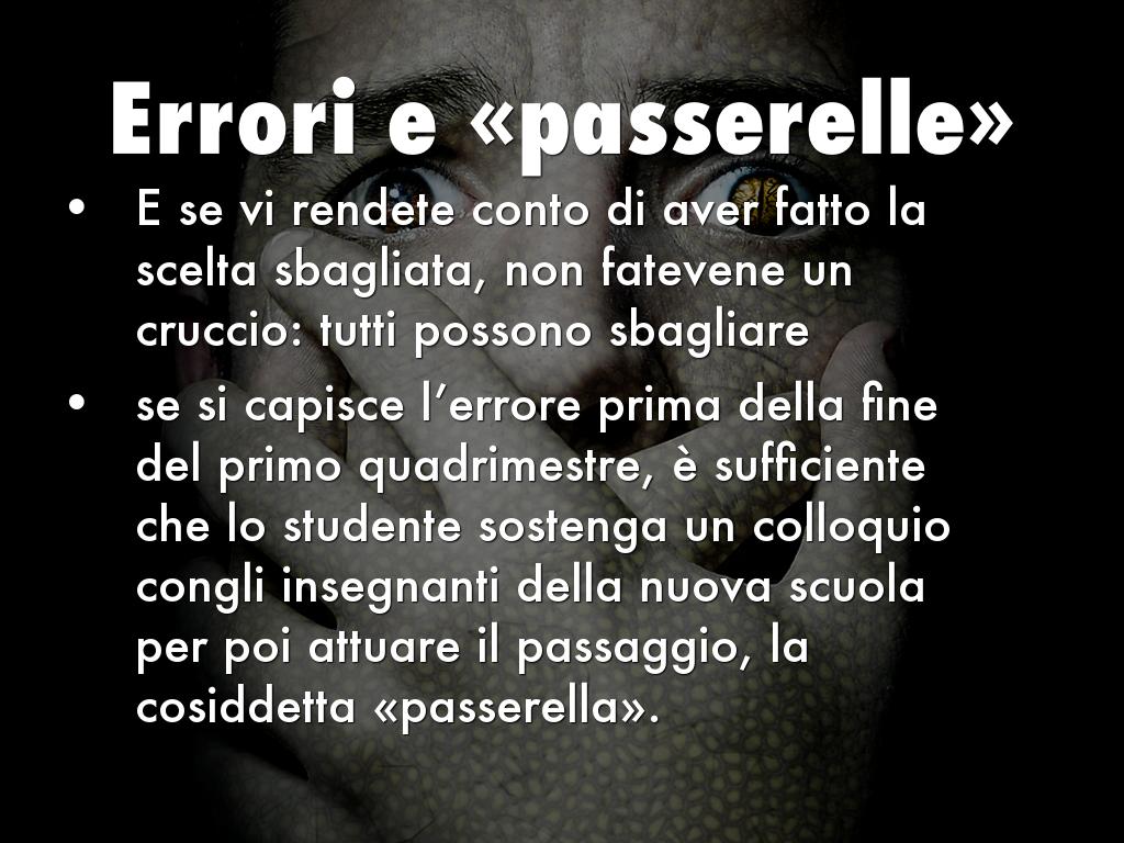 se si capisce l’errore prima della fine del primo quadrimestre, è sufficiente che lo studente sostenga un colloquio congli insegnanti della nuova scuola per poi attuare il passaggio, la cosiddetta «passerella».