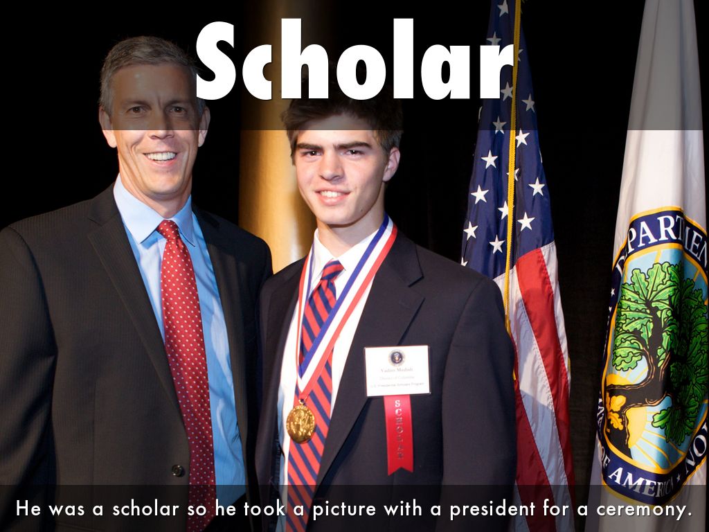 He was a scholar so he took a picture with a president for a ceremony.