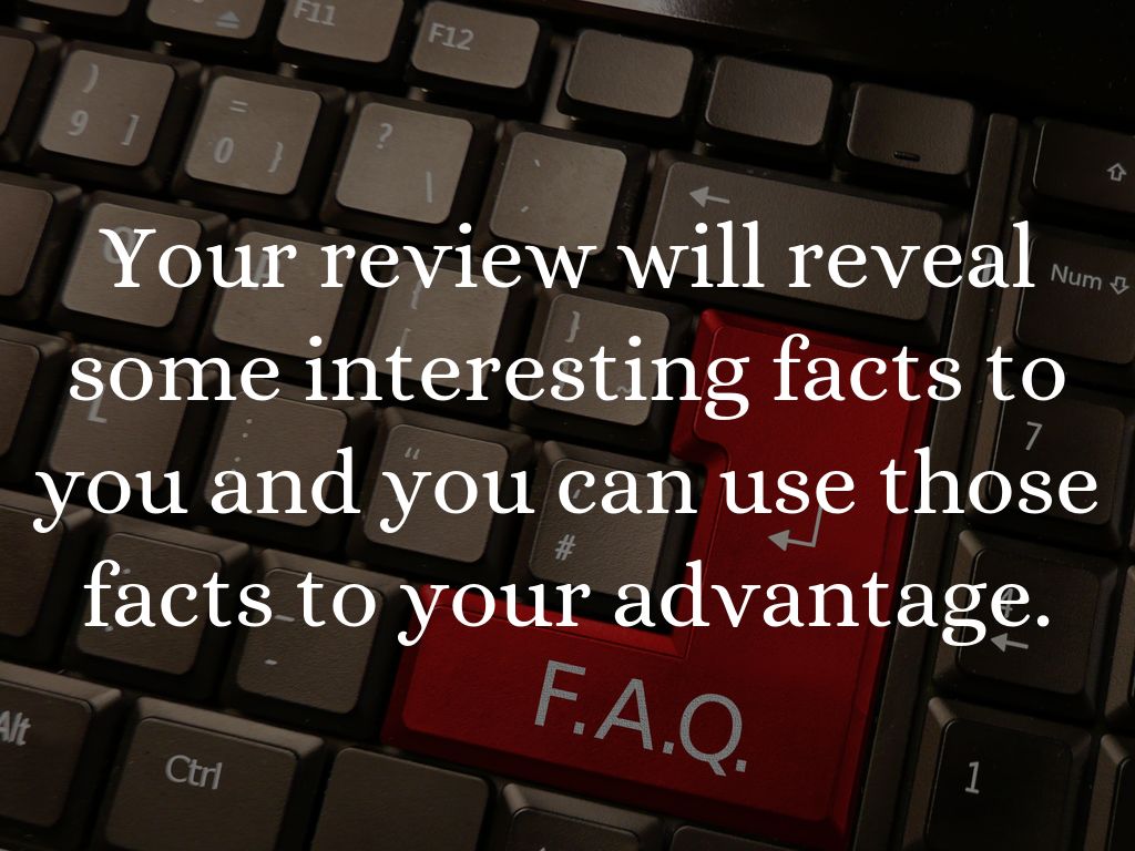 Your review will reveal some interesting facts to you and you can use those facts to your advantage.