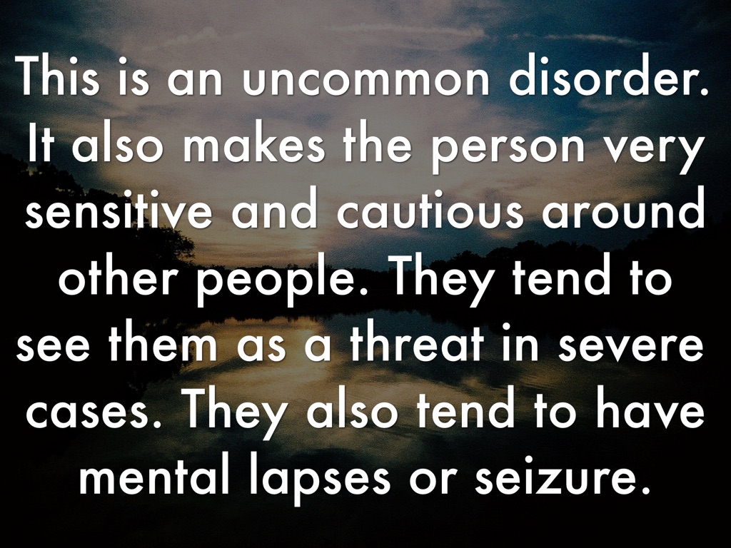 This is an uncommon disorder. It also makes the person very sensitive and cautious around other people. They tend to see them as a threat in severe cases. They also tend to have mental lapses or seizure.