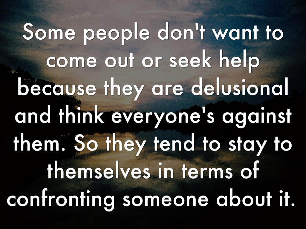 Some people don't want to come out or seek help because they are delusional and think everyone's against them. So they tend to stay to themselves in terms of confronting someone about it.