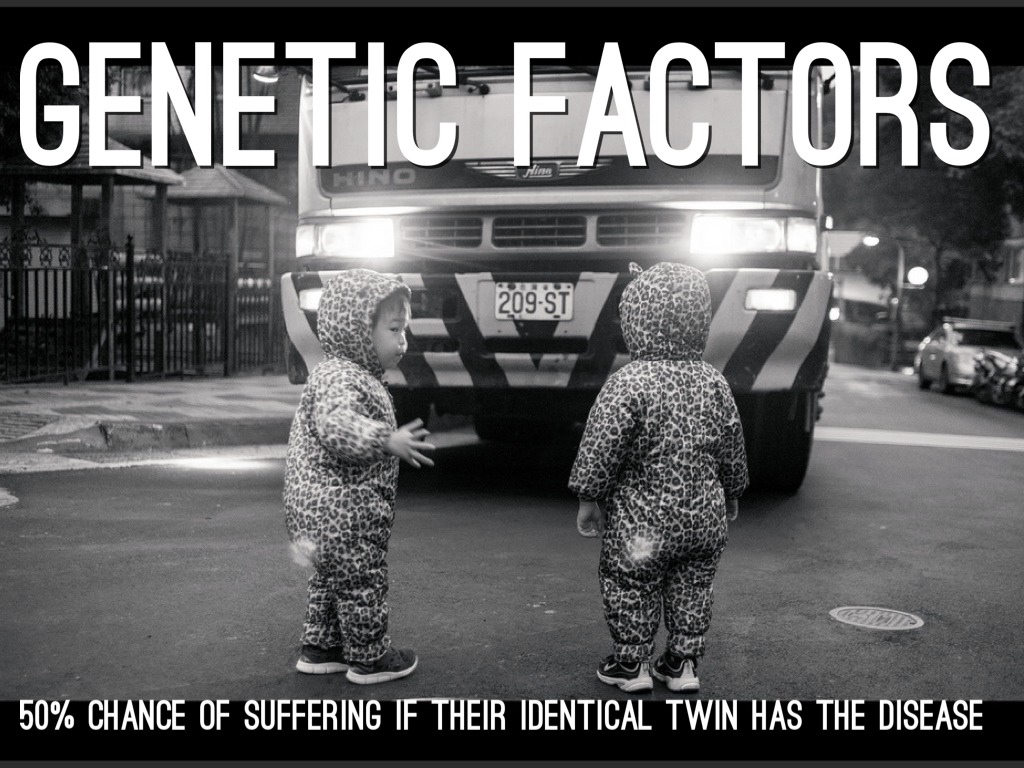 50% CHANCE OF SUFFERING IF THEIR IDENTICAL TWIN HAS THE DISEASE