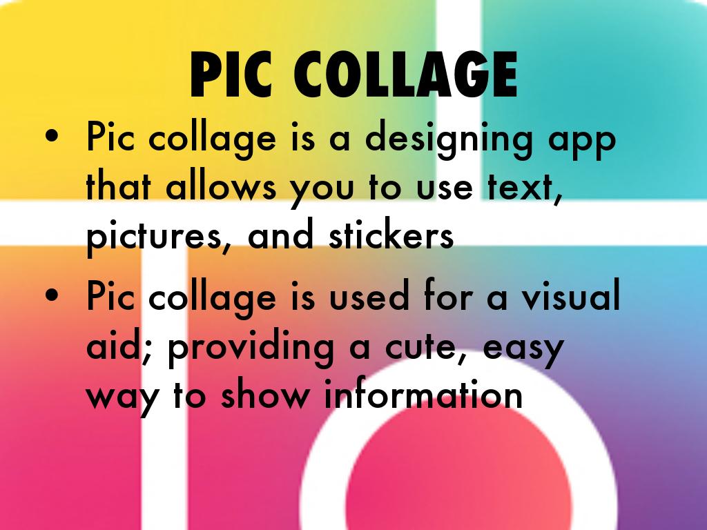 Pic collage is used for a visual aid; providing a cute, easy way to show information