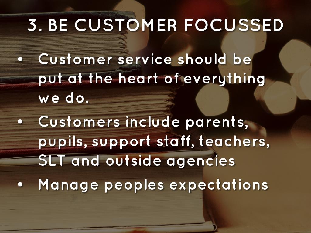 Customers include parents, pupils, support staff, teachers, SLT and outside agencies