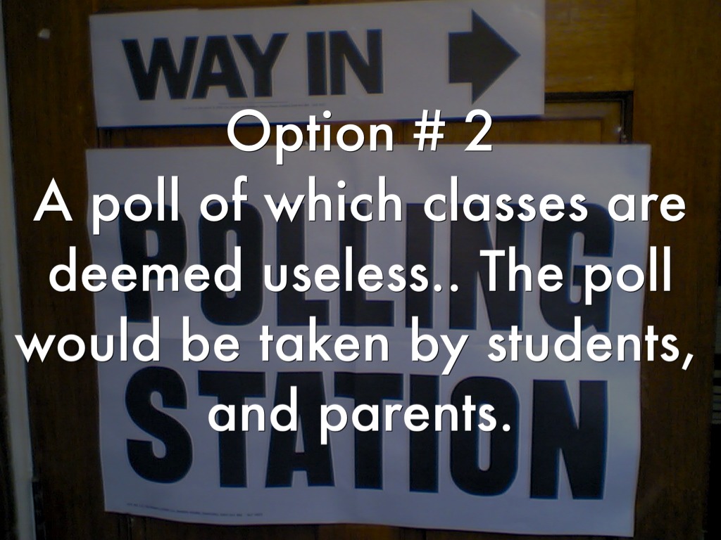 Option #1 The student takes a test before selecting classes, seeing which areas they would be good at, and plausible careers for the student depending on what grade they are in. (Would be tested after 5th Grade).