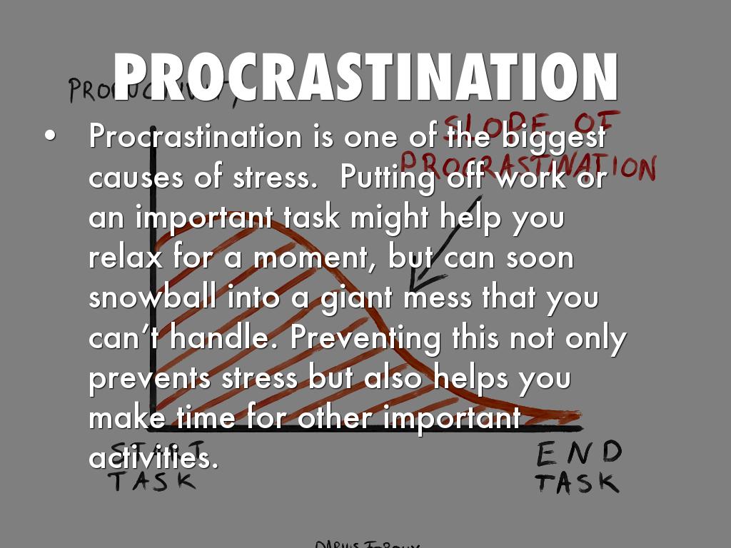 Procrastination is one of the biggest causes of stress. Putting off work or an important task might help you relax for a moment, but can soon snowball into a giant mess that you can’t handle. Preventing this not only prevents stress but also helps you make time for other important activities.