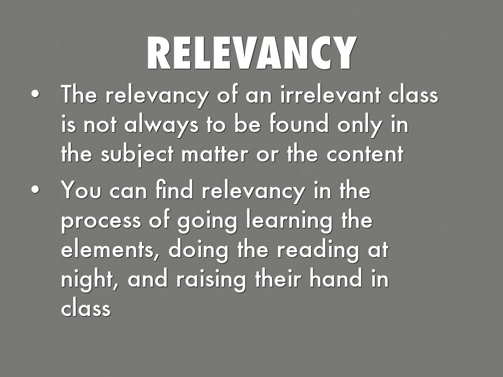 You can find relevancy in the process of going learning the elements, doing the reading at night, and raising their hand in class