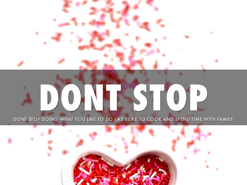 DONT STOP DOING WHAT YOU LIKE TO DO LIKE I LIKE TO COOK AND SPEND TIME WITH FAMILY