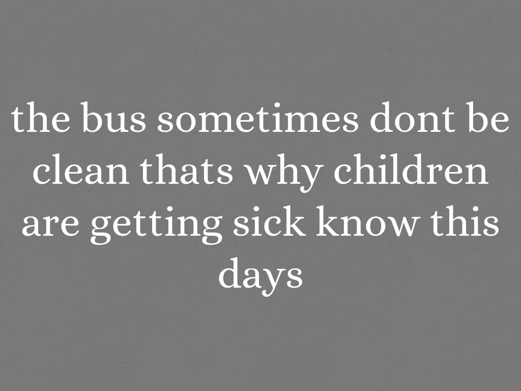 the bus sometimes dont be clean thats why children are getting sick know this days