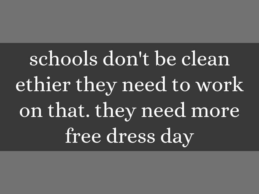 schools don't be clean ethier they need to work on that. they need more free dress day