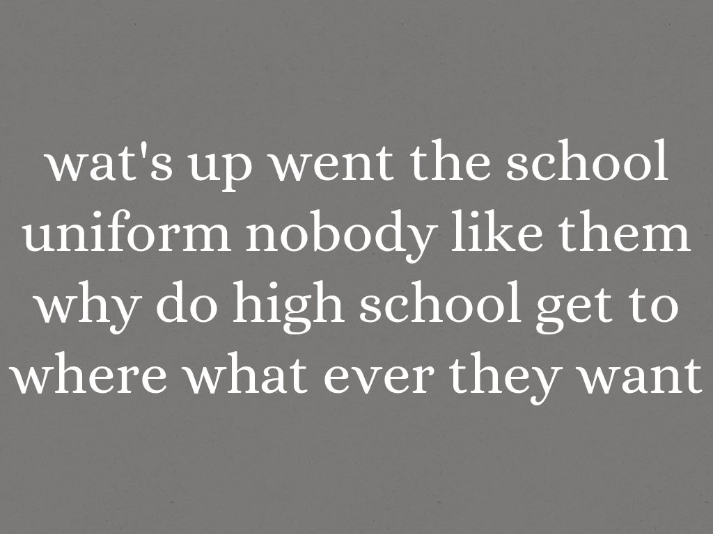 wat's up went the school uniform nobody like them why do high school get to where what ever they want