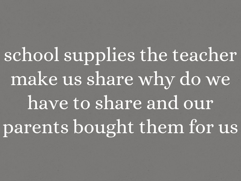 school supplies the teacher make us share why do we have to share and our parents bought them for us