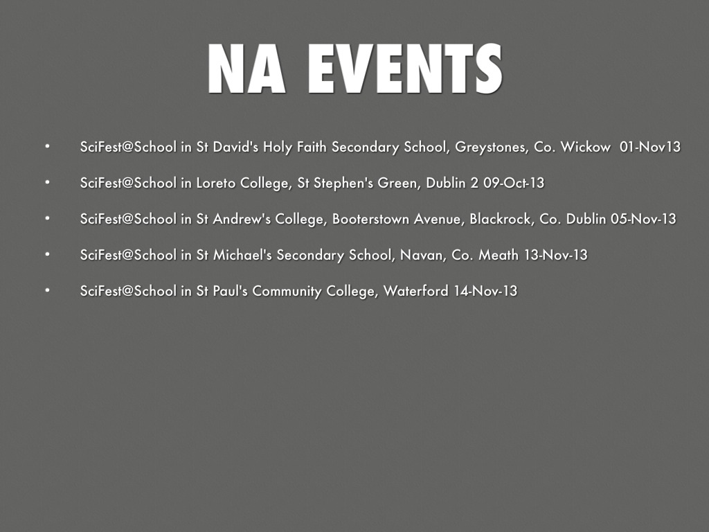 • SciFest@School in St Michael's Secondary School, Navan, Co. Meath 13-Nov-13
