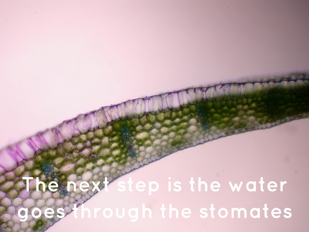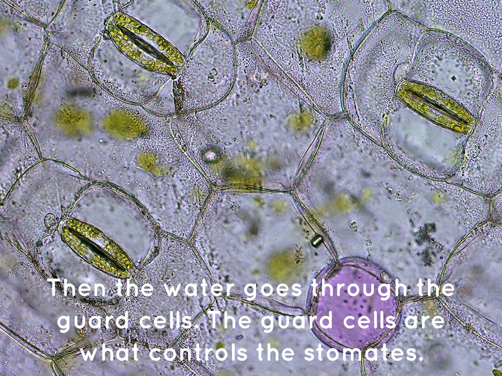 Then the water goes through the guard cells. The guard cells are what controls the stomates.